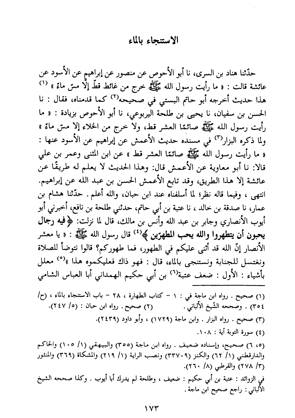 (1) صحيح. رواه ابن ماجة في: 1- كتاب الطهارة، 28- باب الاستنجاء بالماء، (ح/
