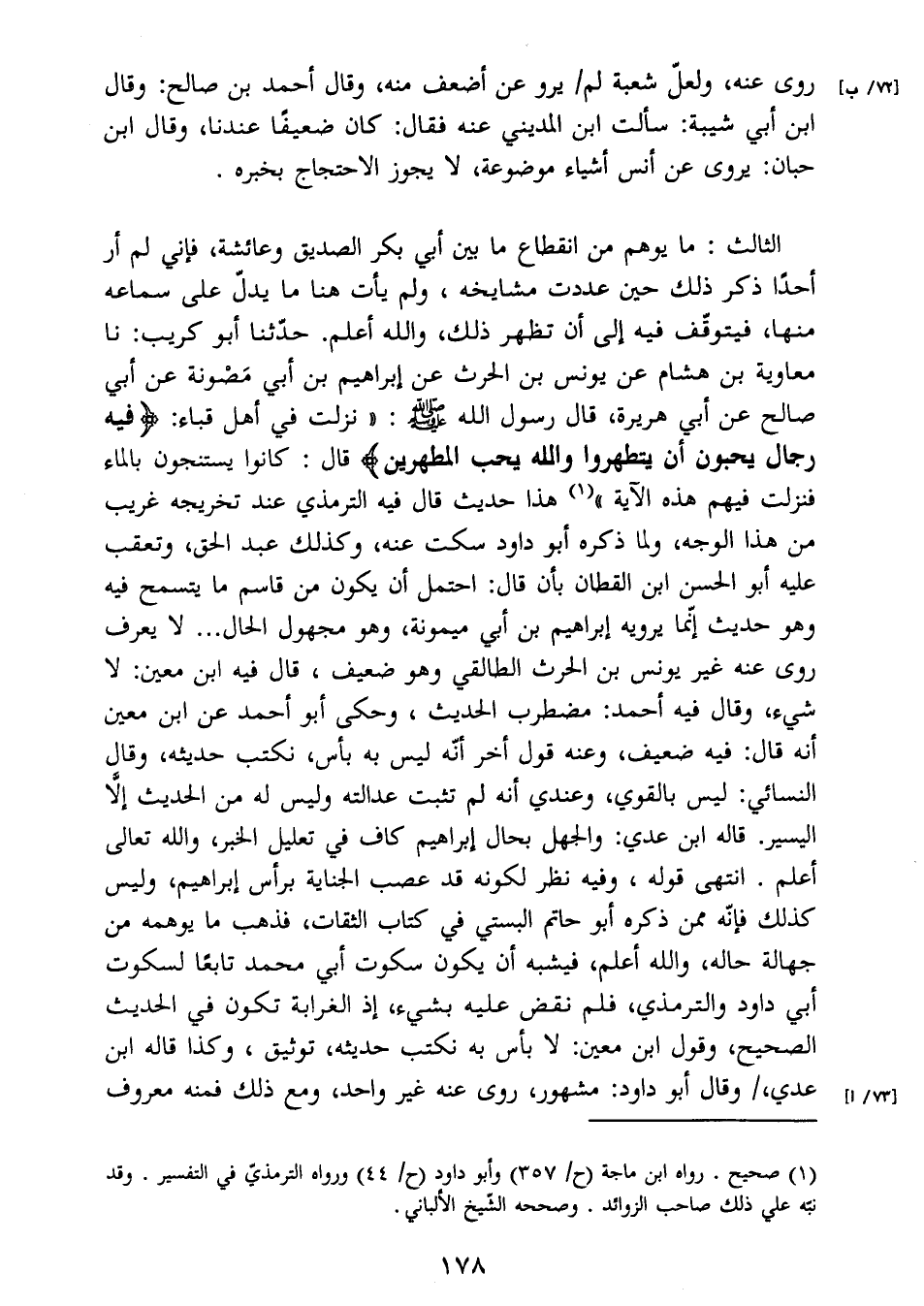 صالح عن أبي هريرة، قال رسول الله صَلَّى اللَّهُ عَلَيْهِ وَسَلَّمَ: " نزلت في أهل قباء: (فيه