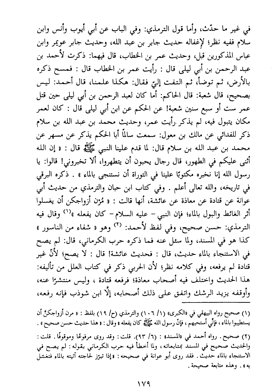 يستطيبوا بالماء، فإني أستحيهم، فإنّ رسول الله صَلَّى اللَّهُ عَلَيْهِ وَسَلَّمَ كان يفعله " وقال: " هذا حديث حسن صحيح ".