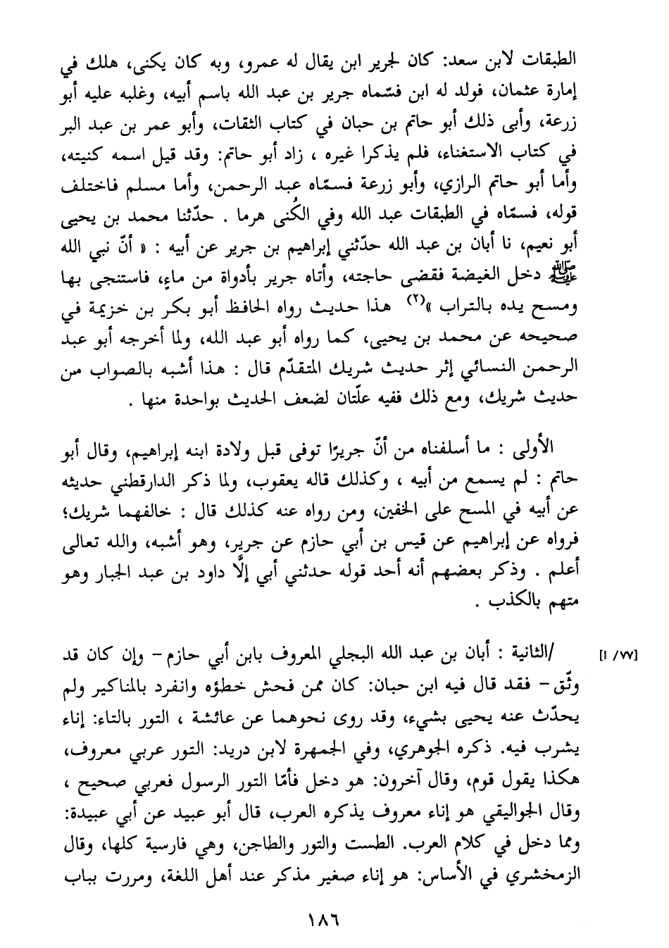 الأولى: ما أسلفناه من أن جريرًا توفى قبل ولادة ابنه إبراهيم، وقال أبو