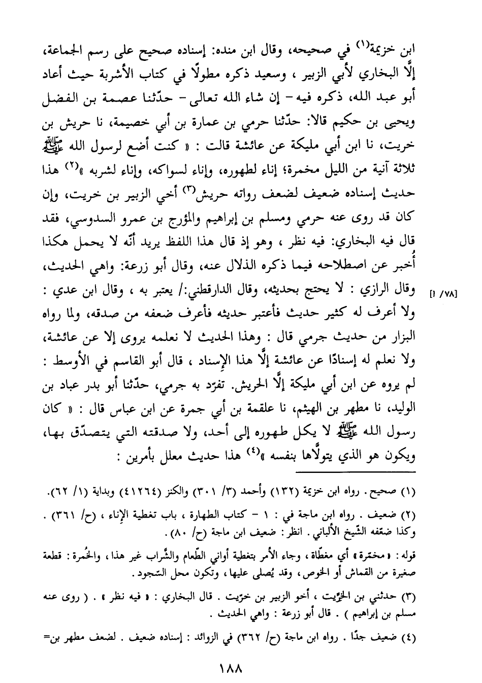 لم يروه عن ابن أبي مليكة إلا الحريش. لفرد به جرمي، حدّثنا أبو بدر عباد بن