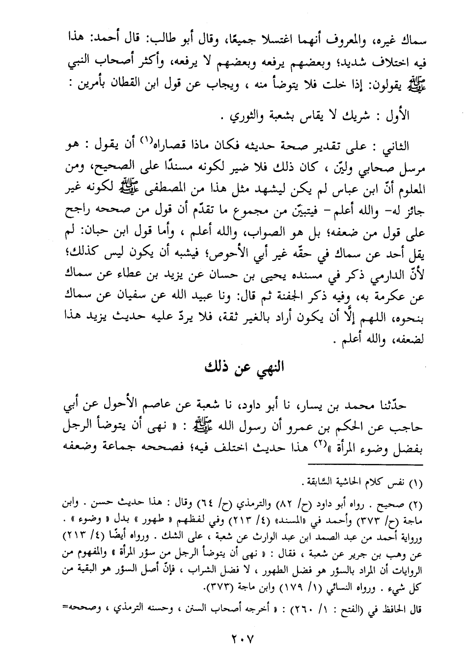 حاجب عن الحكم بن عمرو أن رسول الله صَلَّى اللَّهُ عَلَيْهِ وَسَلَّمَ: " نهى أن يتوضأ الرجل