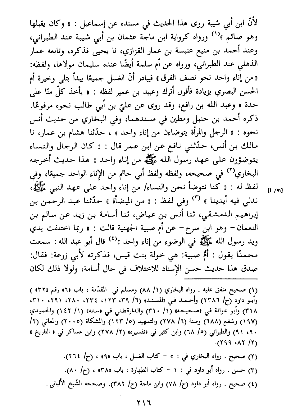 ويد رسول الله صَلَّى اللَّهُ عَلَيْهِ وَسَلَّمَ في الوضوء من إناء واحد " (4) قال أبو عبد الله: سمعت