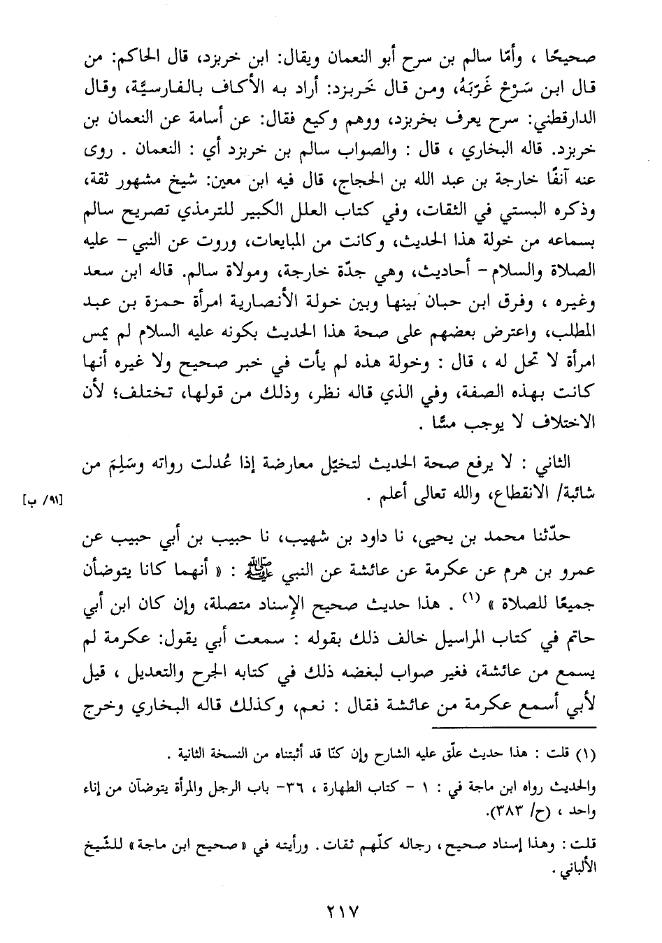 (1) قلت: هذا حديث علق عليه الشارح وإن كنا قد أثبتناه من النسخة الثانية.