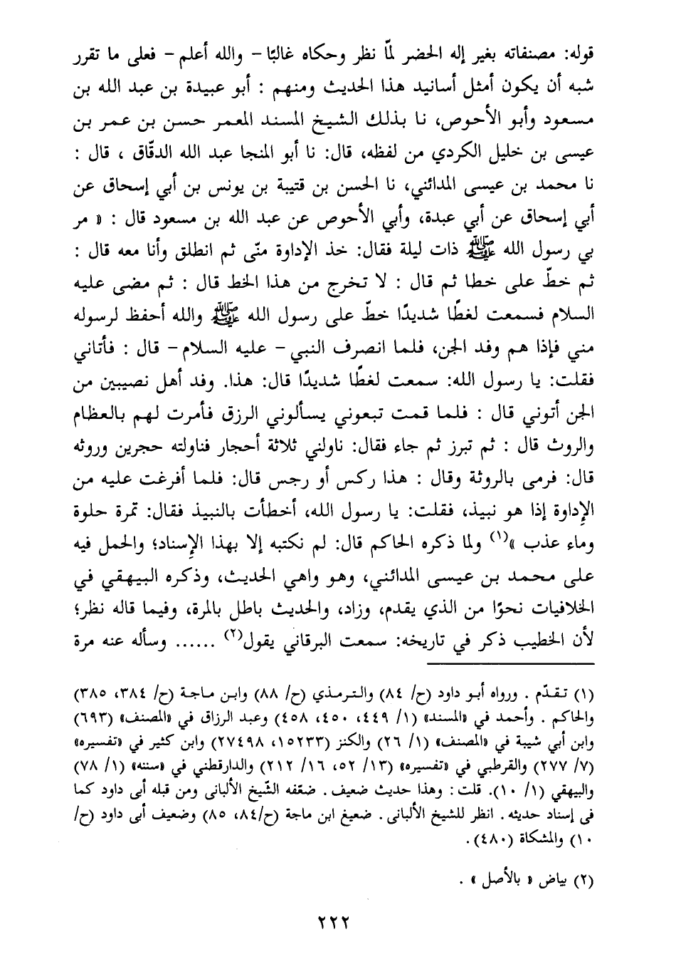 والبيهقي (1/10) . قلت: وهذا حديث ضعيف. ضعفه الشيخ الألباني ومن قبله إلى داود كما