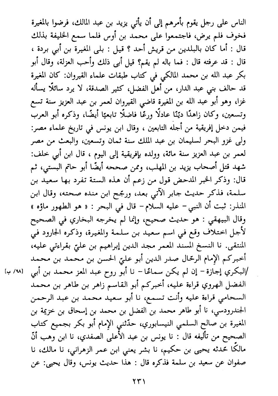 بكر عبد الله بن محمد المالكي في كتاب طبقات علماء القيروان: كان المغيرة