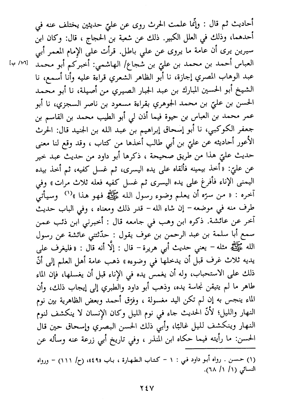 يديه ثلاث غرف قبل أن يدخلها في وضوءه " ذهب عامة أهل العلم إلى أنّ
