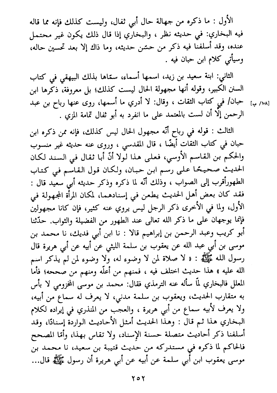 حبان في كتاب الثقات أيضًا، قال المقدسي، وروى عنه حديثه غير منسوب