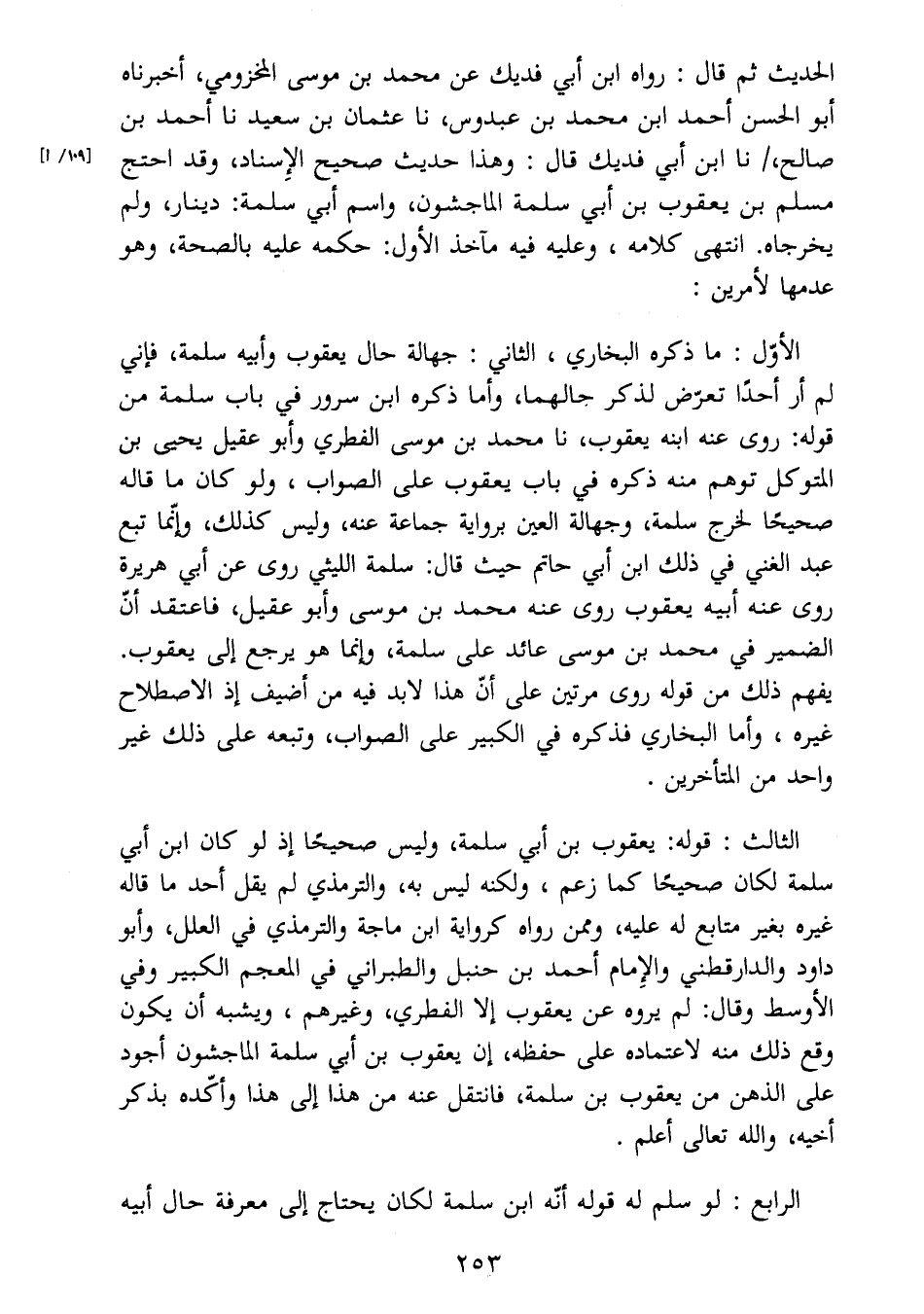 الأوّل: ما ذكره البخاري، الثاني: جهالة حال يعقوب وأبيه سلمة، فإني