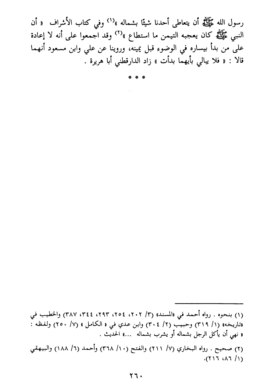 رسول الله صَلَّى اللَّهُ عَلَيْهِ وَسَلَّمَ أن يتعاطى أحدنا شيئًا بشماله " (1) وفي كتاب الأشراف " أن
