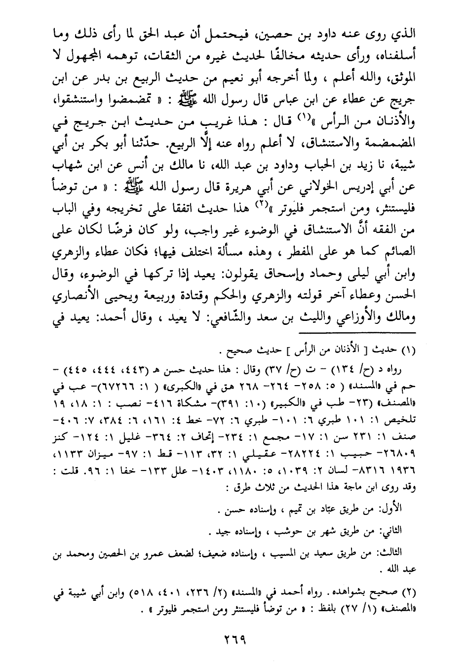 (1) حديث [الأذنان من الرأس] حديث صحيح.