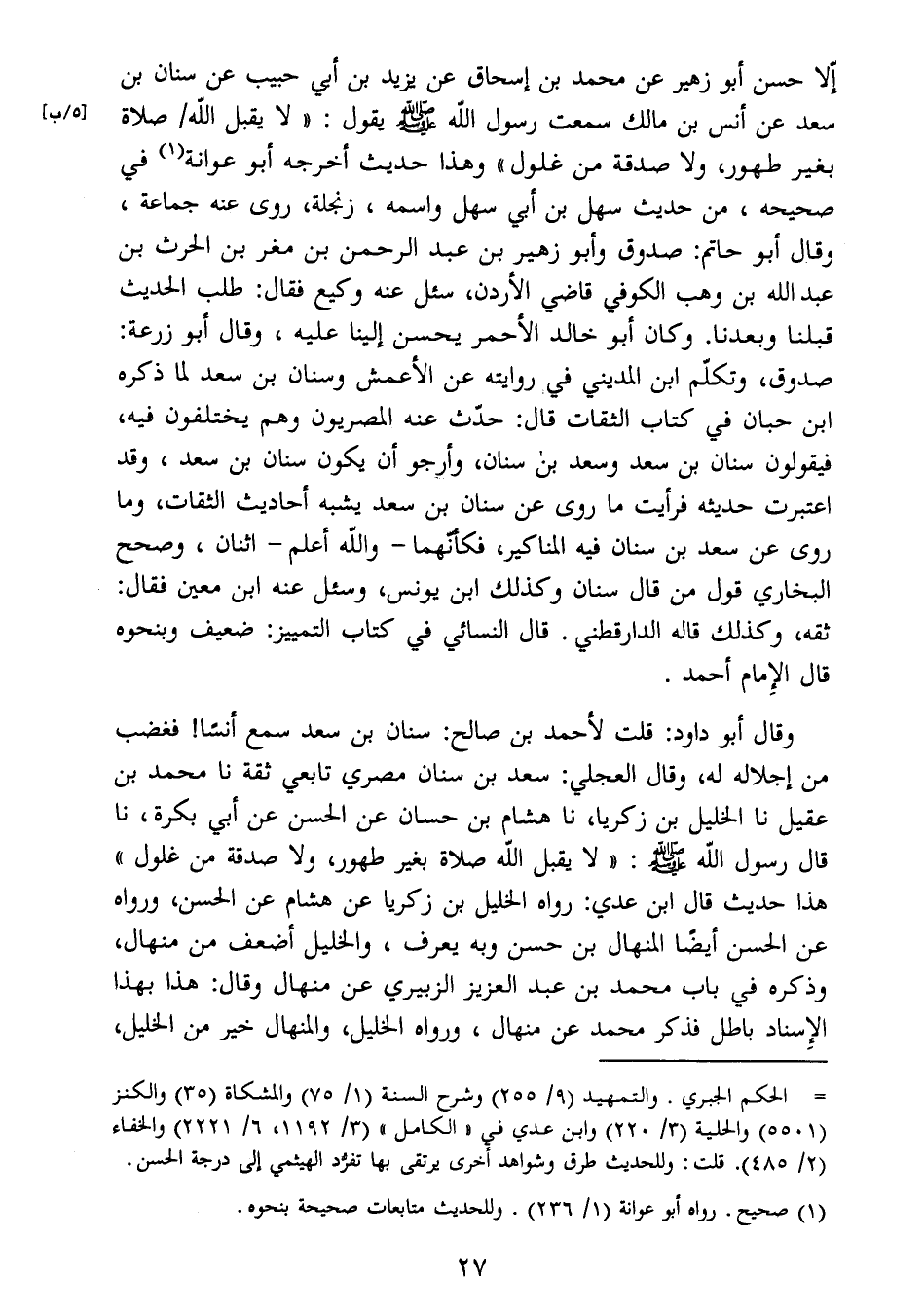 اعتبرت حديثه فرأيت ما روى عن سنان بن سعد يشبه أحاديث الثقات ما