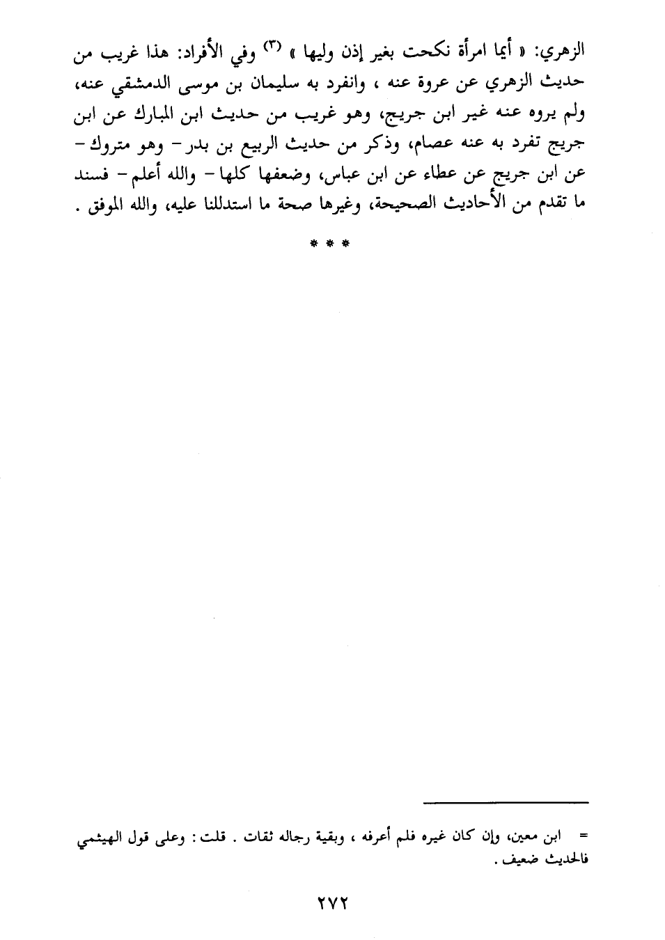 الزهري: " أيما امرأة نكحت بغير إذن وليها " 31) وفي الأفراد: هذا غريب من