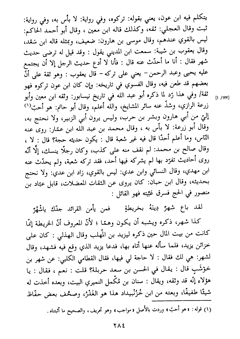 شهر فقال: أنا ما أحدّث عنه قال: فأنا لا أدع حديث الرجل إلا أن يجتمع