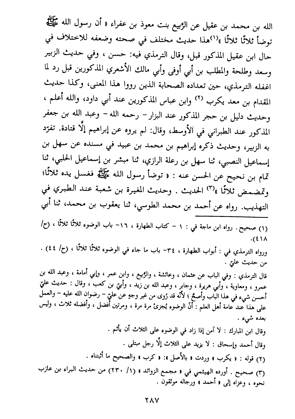 ورواه الترمذي في: أبواب الطهارة، 34- باب ما جاء في الوضوء ثلاثا ثلاثا، (ح/44) .