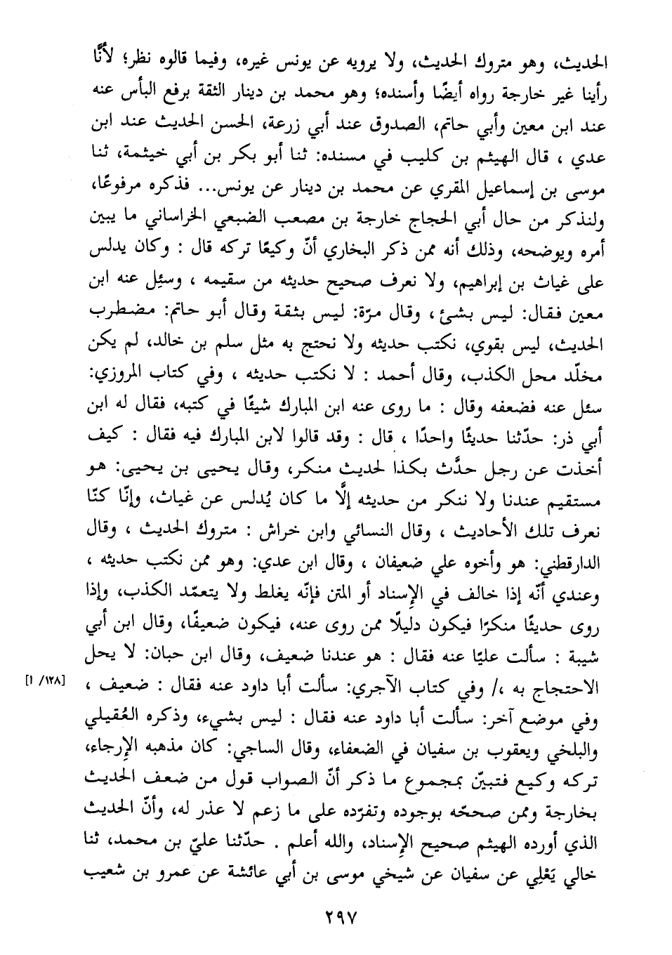 تركه وكيع فتبيّن بمجموع ما ذكر أنّ الصواب قول من ضعف الَحديث