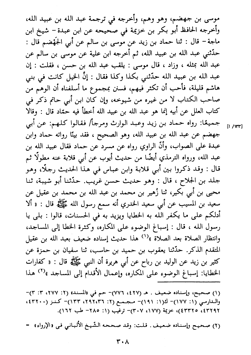 الخطايا: إسباغ الوضوء على المكاره، وإعمال الأقدام إلى المساجد " (2) هذا
