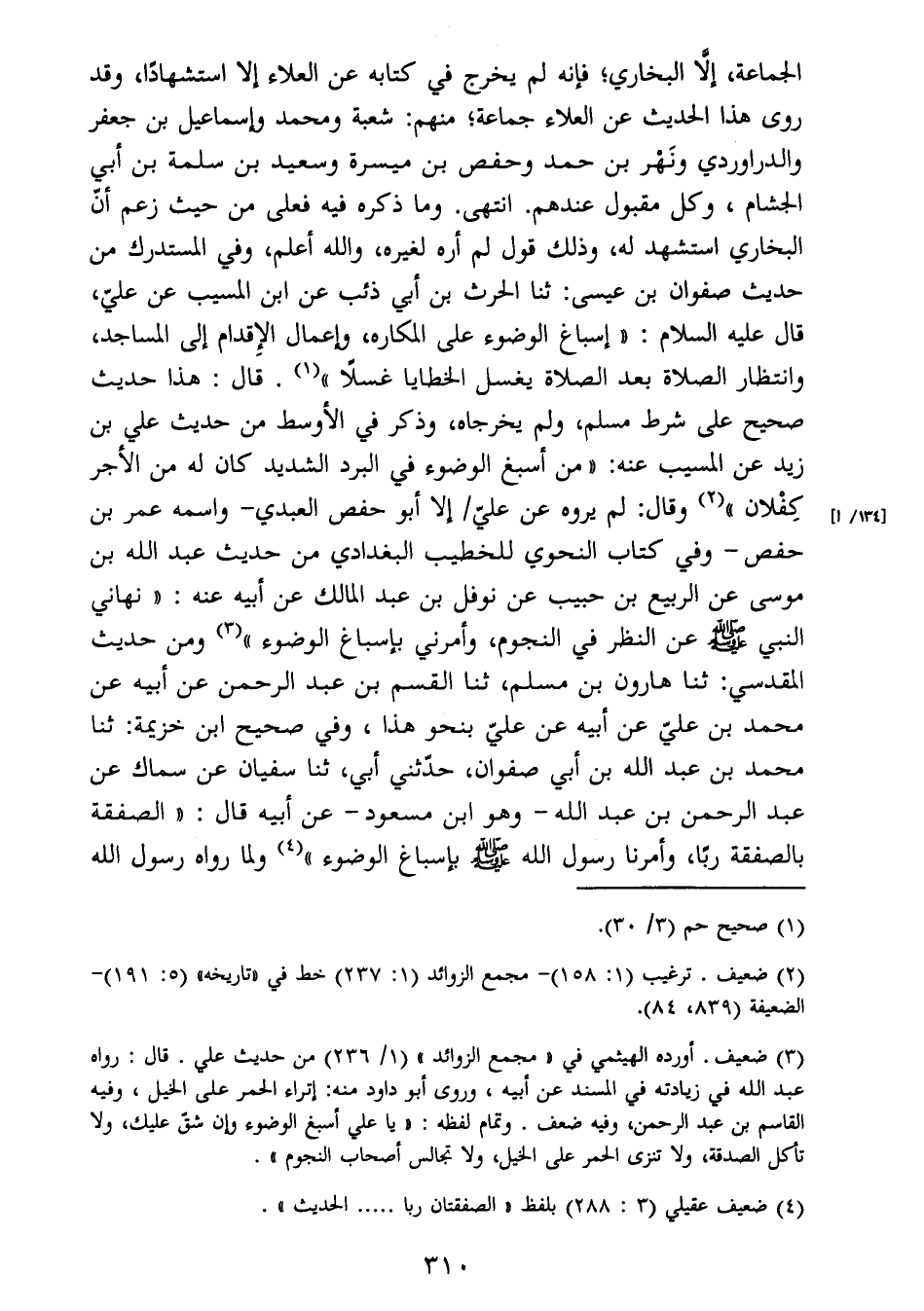 قال عليه السلام: " إسباغ الوضوء على المكاره وإعمال الإِقدام إلى المساجد،