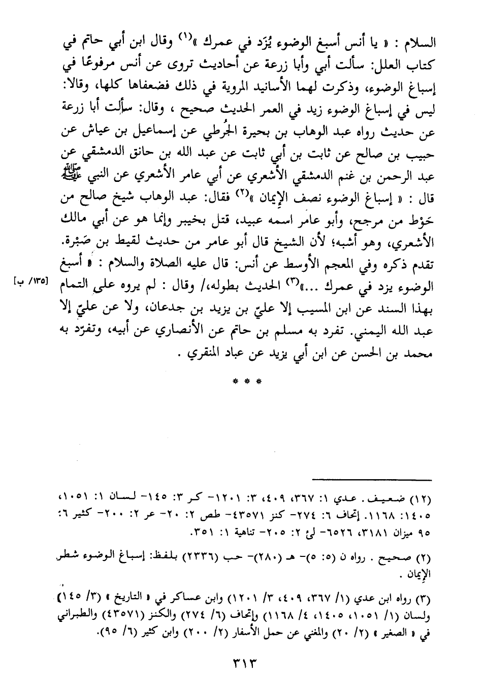 السلام: " يا أنس أسبغ الوضوء يُزَد في عمرك " (1) وقال ابن أبي حاتم في