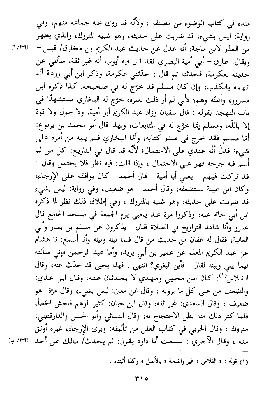 (1) قوله: " الفلاس " غير واضحة " بالأصل " وكذا أثبتناه.