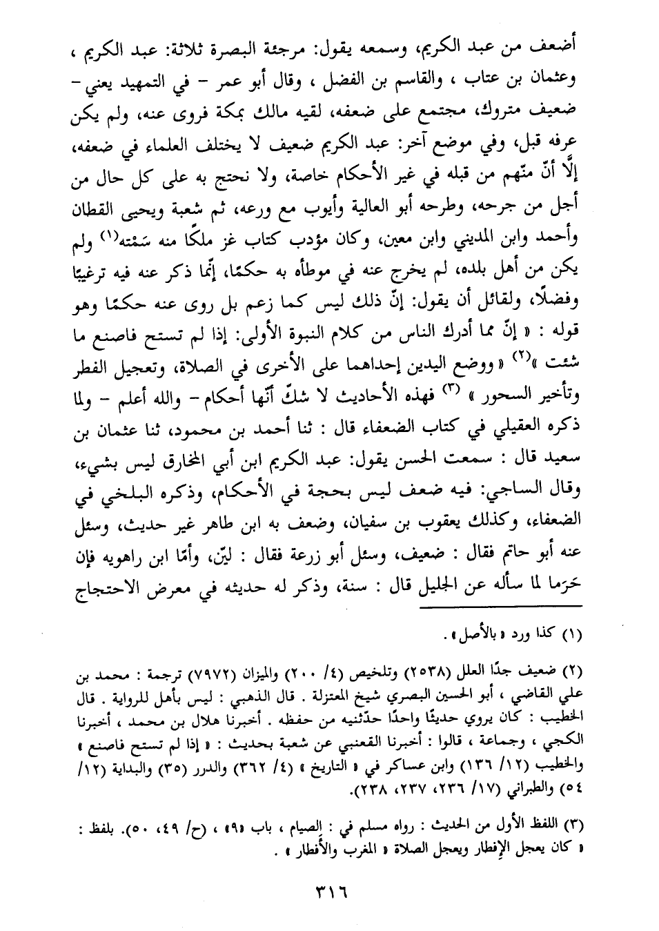 عرفه قبل، وفي موضع آخر: عبد الكريم ضعيف لا يختلف العلماء في ضعفه،