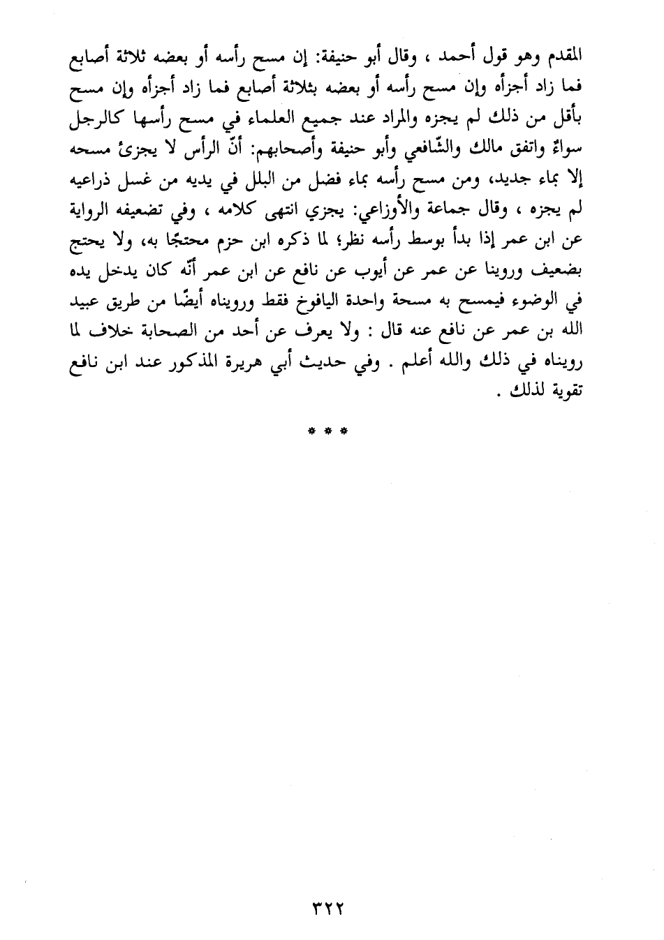 في الوضوء فيمسح به مسحة واحدة اليافوخ فقط ورويناه أيضا من طريق عبيد