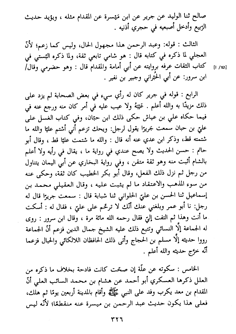 الثالث: قوله: وعبد الرحمن هذا مجهول الحال، وليس كما زعم؛ لأن