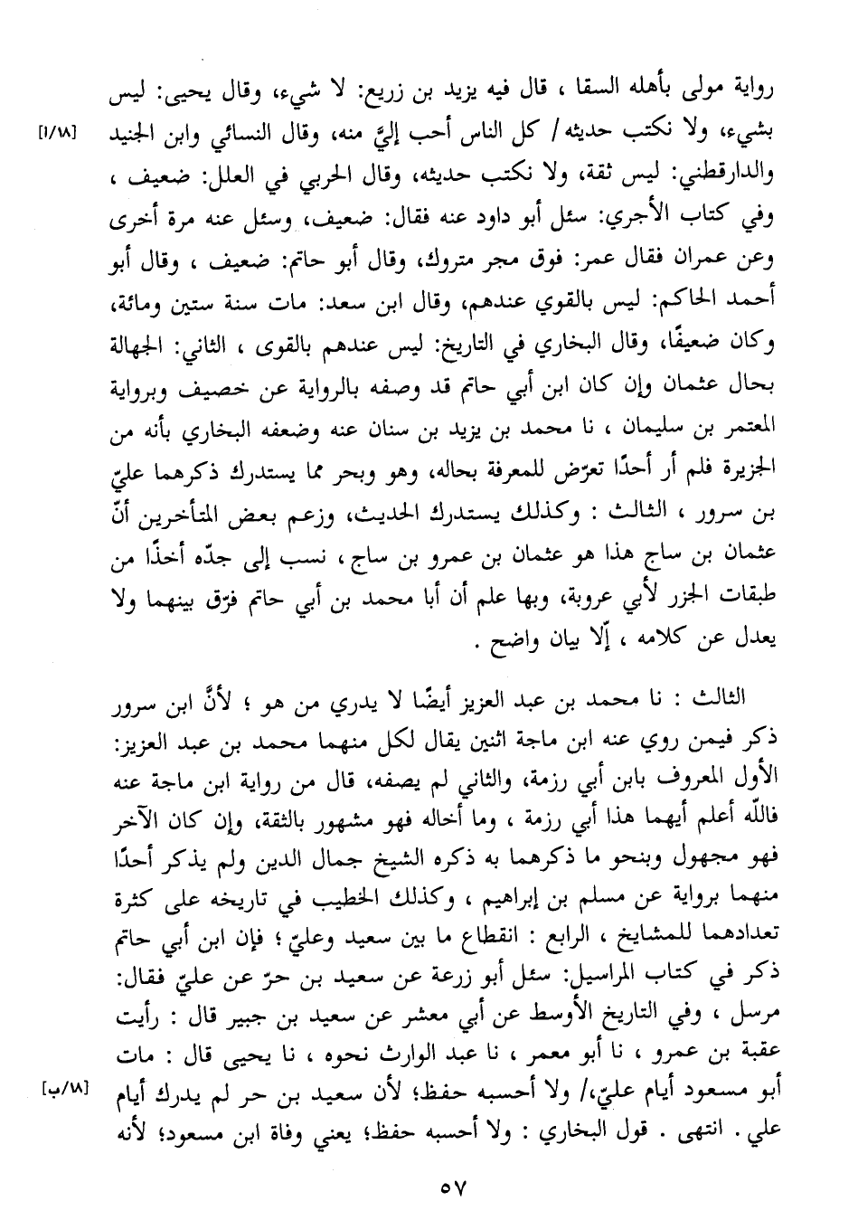 الثالث: نا محمد بن عبد العزيز أيضا لا يدري من هو؛ لأنَّ ابن سرور