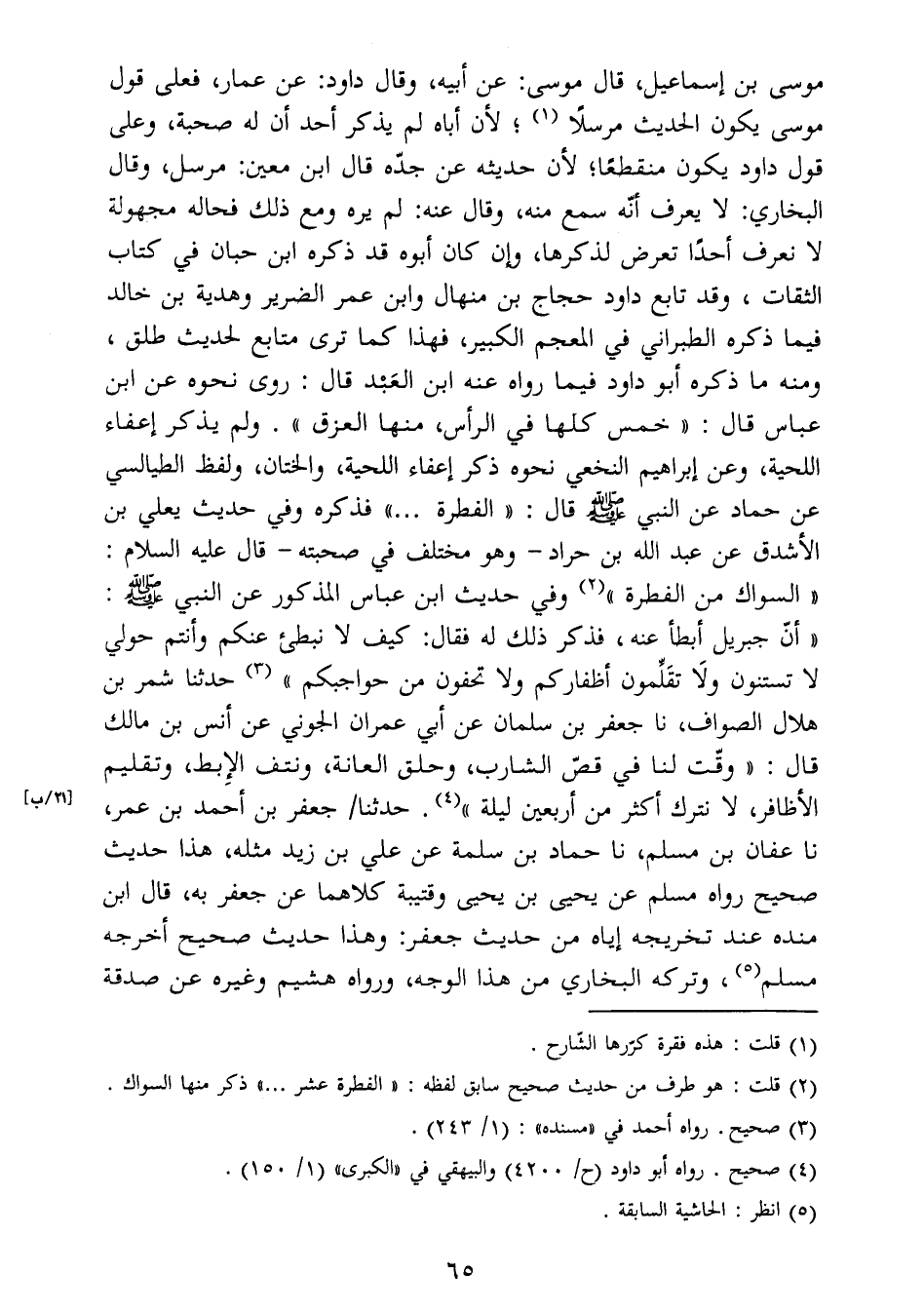 موسى يكون الحديث مرسلا (1) ؛ لأن أباه لم يذكر أحد أن له صحبة، وعلى