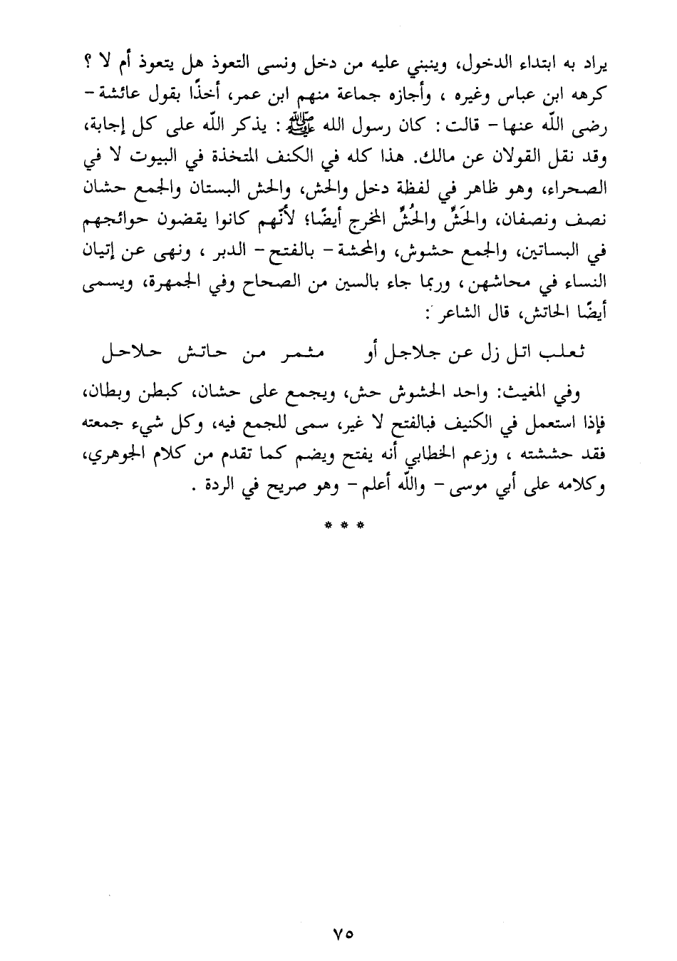 في البساتين، والجمع حشوش، والمحشة- بالفتح- الدبر، ونهى عن إتيان