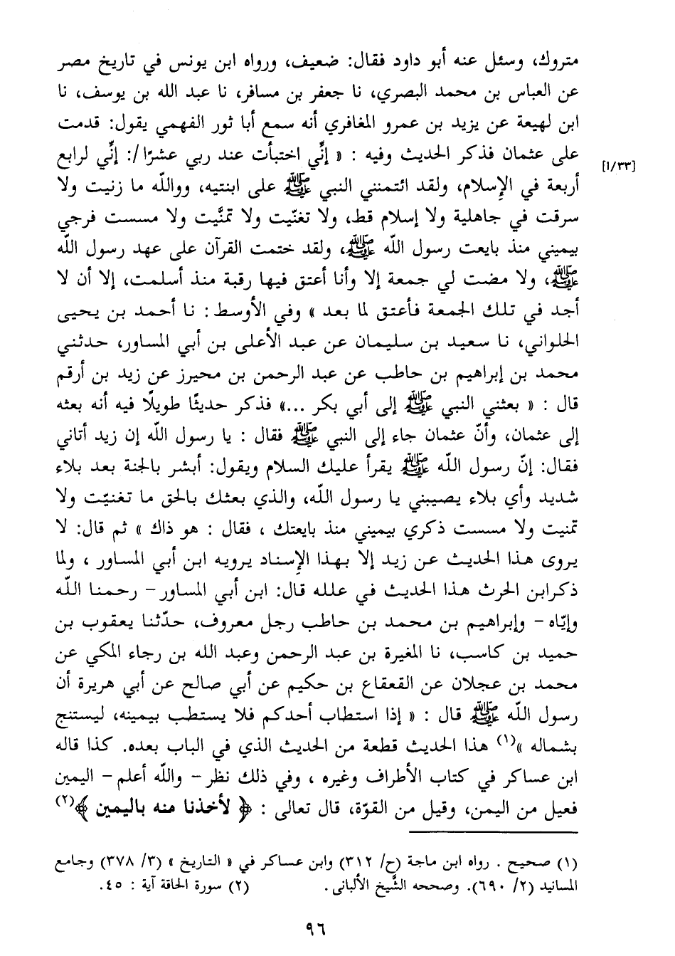 تمنيت ولا مسست ذكري بيميني منذ بايعتك، فقال: هو ذاك " ثم قال: لا
