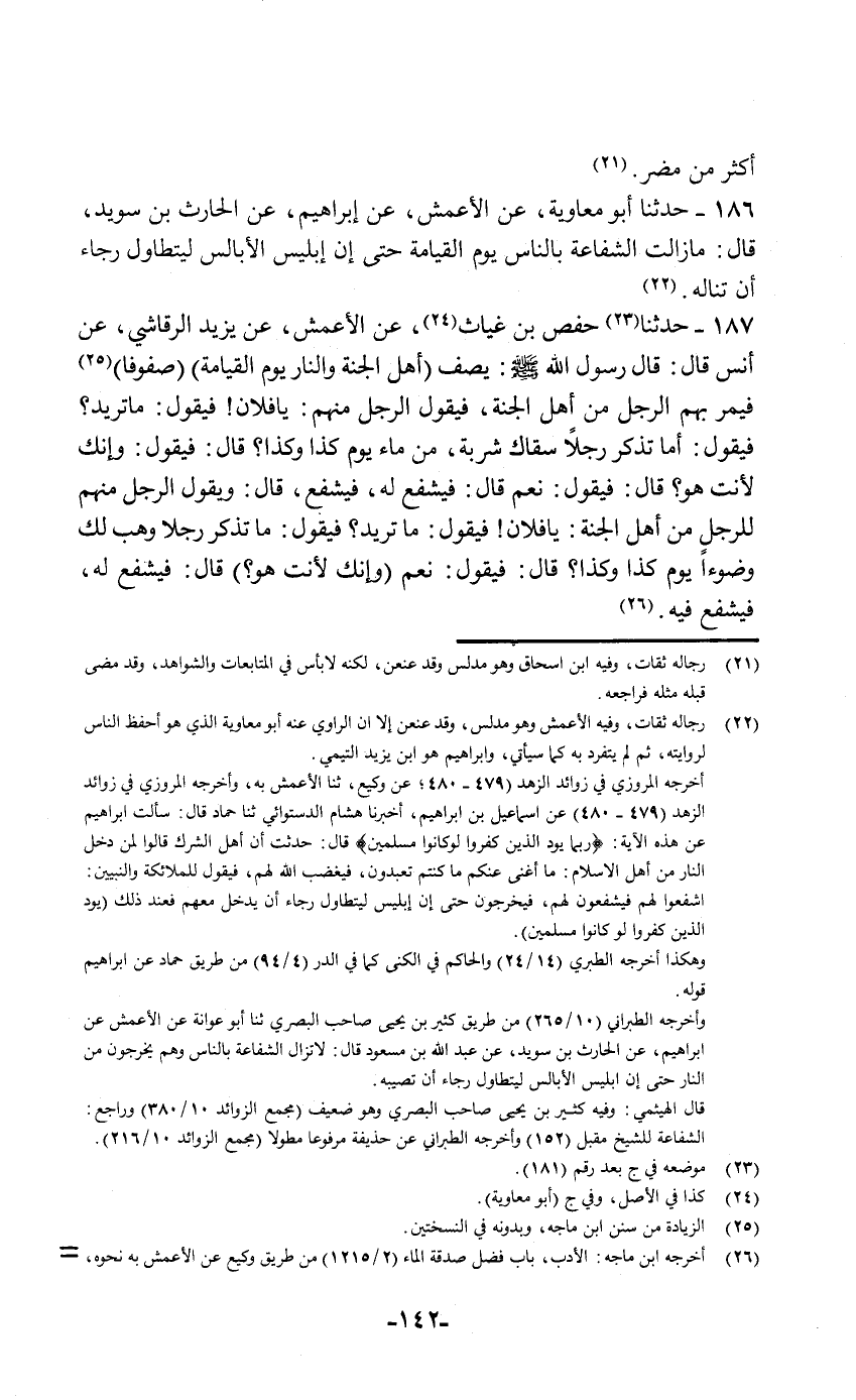 186 - حَدَّثَنَا أَبُو مُعَاوِيَةَ , عَنِ الْأَعْمَشِ , عَنْ إِبْرَاهِيمَ , عَنِ الْحَارِثِ بْنِ سُوَيْدٍ قَالَ: «§مَا زَالَتِ الشَّفَاعَةُ بِالنَّاسِ يَوْمَ الْقِيَامَةِ حَتَّى إِنَّ إِبْلِيسَ الْأَبَالِسِ لَيَتَطَاوَلُ رَجَاءَ أَنْ تَنَالَهُ»