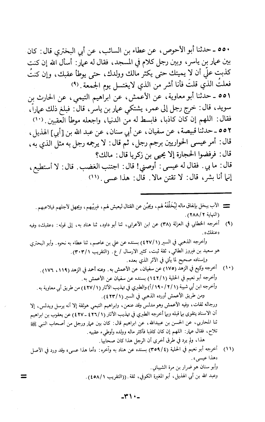551 - حَدَّثَنَا أَبُو مُعَاوِيَةَ , عَنِ الْأَعْمَشِ , عَنْ إِبْرَاهِيمَ التَّيْمِيِّ , عَنِ الْحَارِثِ بْنِ سُوَيْدٍ قَالَ: خَرَجَ رَجُلٌ إِلَى عُمَرَ يَشْتَكِي عَمَّارَ بْنَ يَاسِرٍ قَالَ: فَبَلَغَ ذَلِكَ عَمَّارًا , فَقَالَ: اللَّهُمَّ إِنْ كَانَ كَاذِبًا §فَابْسُطْ لَهُ مِنَ الدُّنْيَا وَاجْعَلْهُ مُوَطَّأَ الْعَقِبَيْنِ "