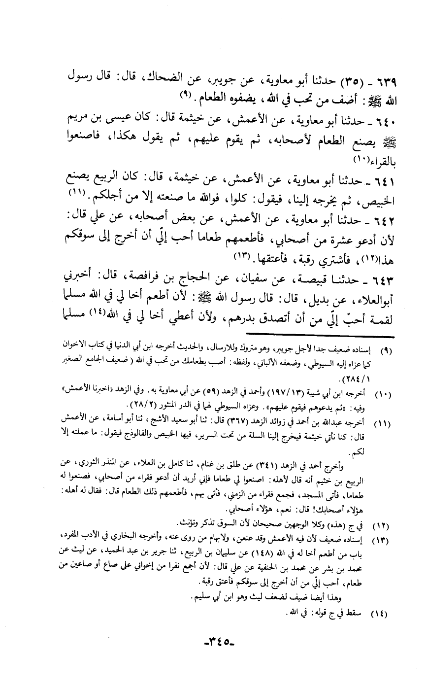 حَدَّثَنَا أَبُو مُعَاوِيَةَ , عَنْ جُوَيْبِرٍ , عَنِ الضَّحَّاكِ قَالَ: قَالَ رَسُولُ اللَّهِ صَلَّى اللهُ عَلَيْهِ وَسَلَّمَ: «§أَضِفْ مَنْ تُحِبَّ فِي اللَّهِ بِصَفْوَةِ الطَّعَامِ»
