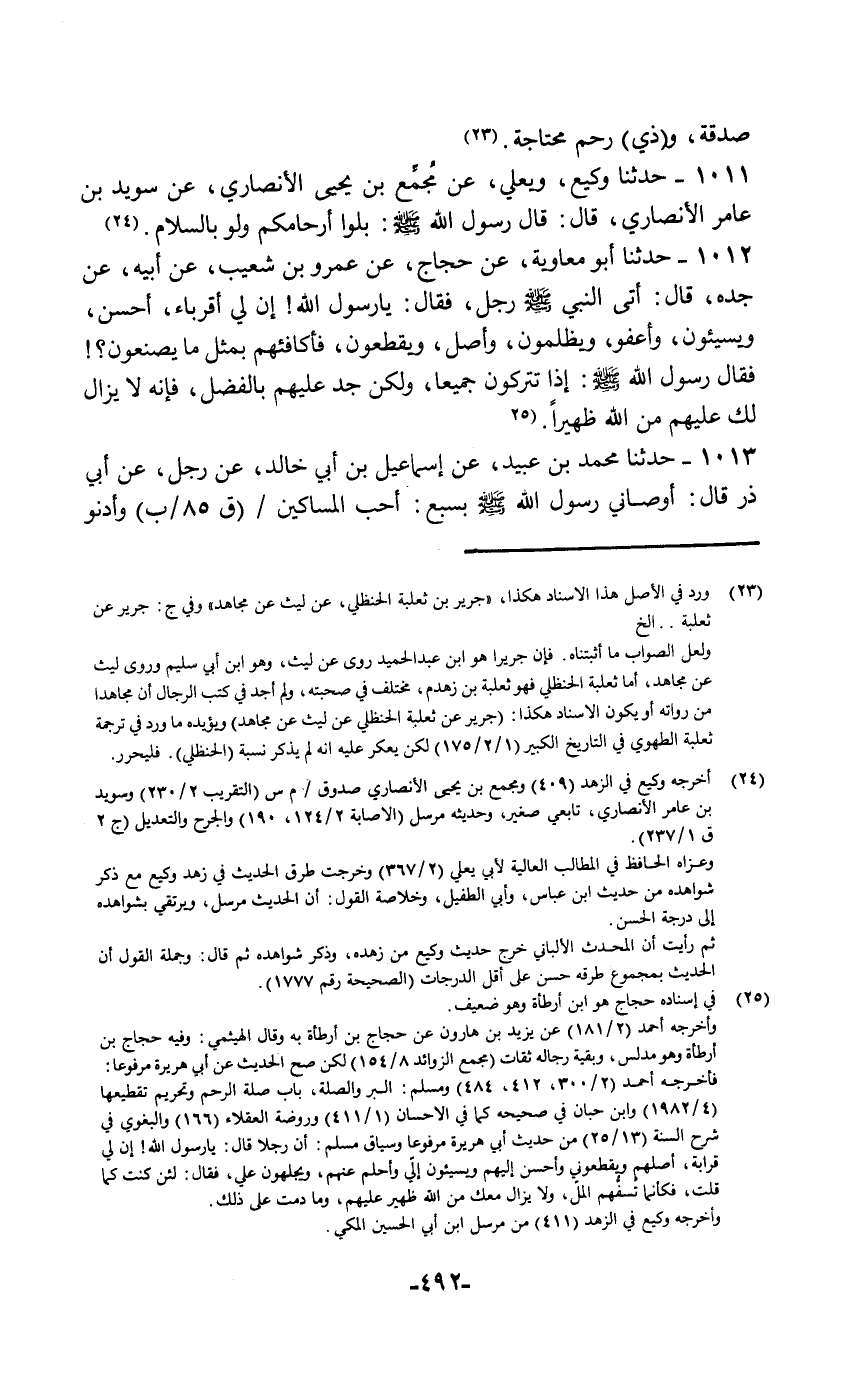حَدَّثَنَا وَكِيعٌ، وَيَعْلَى، عَنْ مُجَمِّعِ بْنِ يَحْيَى الْأَنْصَارِيِّ، عَنْ سُوَيْدِ بْنِ عَامِرٍ الْأَنْصَارِيِّ قَالَ: قَالَ رَسُولُ اللَّهِ صَلَّى اللهُ عَلَيْهِ وَسَلَّمَ: «§بُلُّوا أَرْحَامَكُمْ وَلَوْ بِالسَّلَامِ»