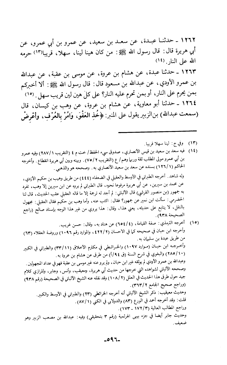 حَدَّثَنَا عَبْدَةُ، عَنْ سَعْدِ بْنِ سَعِيدٍ، عَنْ عَمْرِو بْنِ أَبِي عَمْرٍو، عَنْ أَبِي هُرَيْرَةَ قَالَ: قَالَ رَسُولُ اللَّهِ صَلَّى اللهُ عَلَيْهِ وَسَلَّمَ: «§مَنْ كَانَ هَيِّنًا لَيِّنًا سَهْلًا قَرِيبًا حَرَّمَهُ اللَّهُ عَلَى النَّارِ»