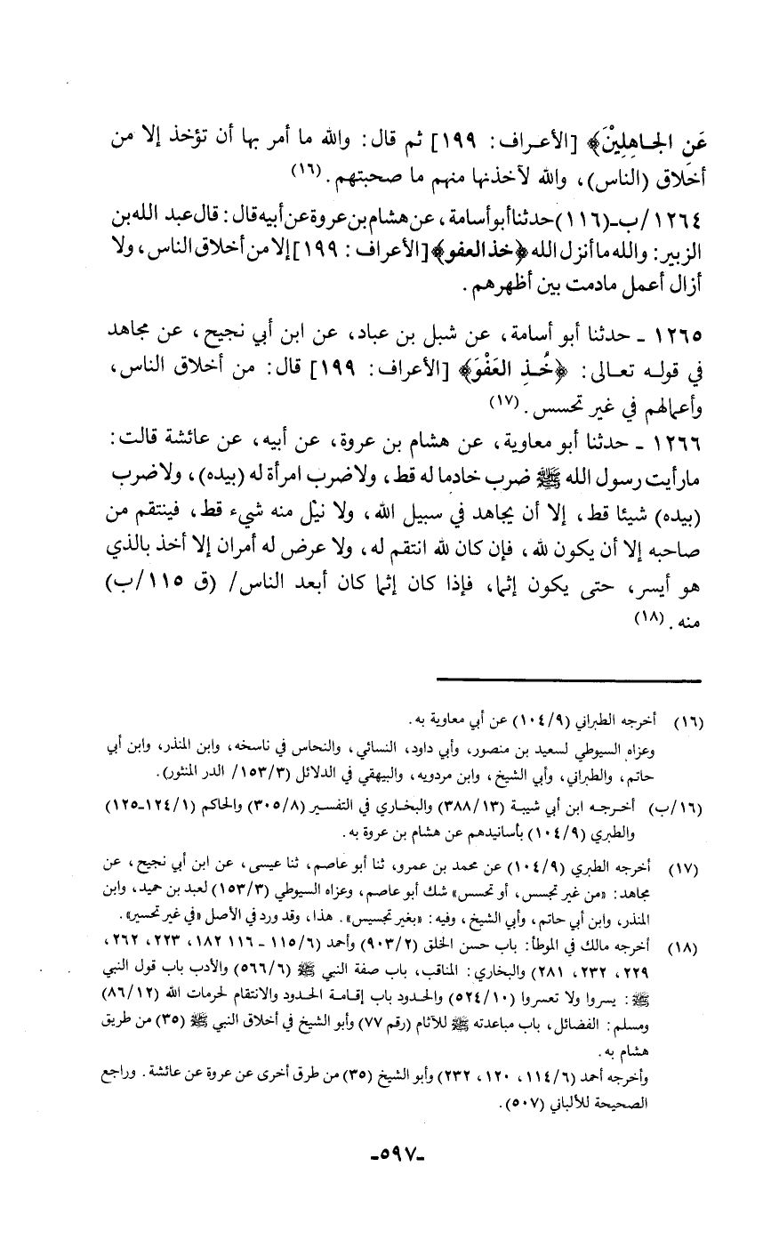 حَدَّثَنَا أَبُو أُسَامَةَ، عَنْ هِشَامِ بْنِ عُرْوَةَ، عَنْ أَبِيهِ قَالَ: قَالَ عَبْدُ اللَّهِ بْنُ الزُّبَيْرِ: " وَاللَّهِ §مَا أَنْزَلَ اللَّهُ {خُذِ الْعَفْوَ} [الأعراف: 199] . إِلَّا مِنْ أَخْلَاقِ النَّاسِ، وَلَا أَزَالُ أَعْمَلُ مَا دُمْتُ بَيْنَ أَظْهُرِهِمْ "
