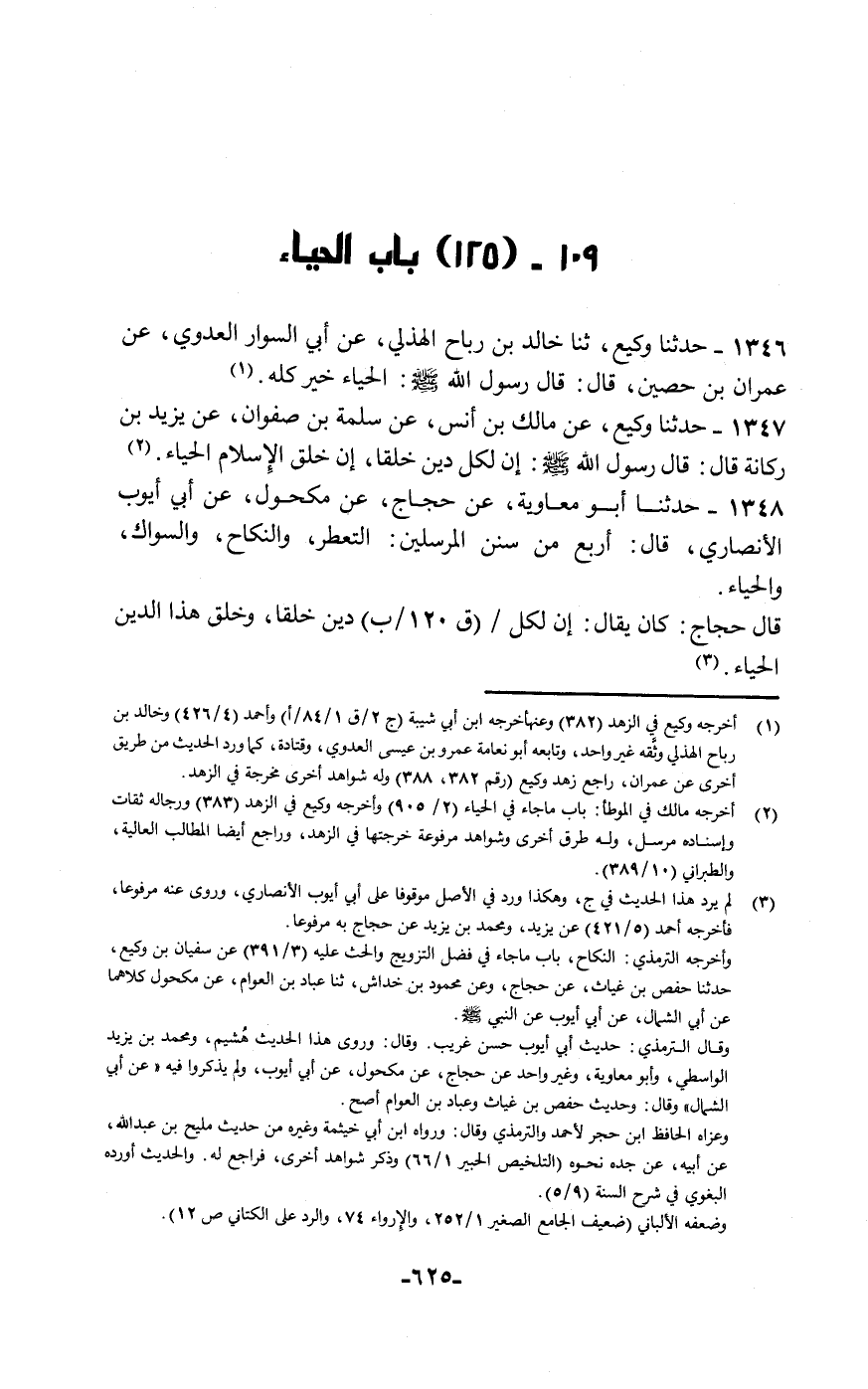 حَدَّثَنَا وَكِيعٌ، ثنا خَالِدُ بْنُ رَبَاحٍ الْهُذَلِيُّ، عَنْ أَبِي السَّوَّارِ الْعَدَوِيِّ، عَنْ عِمْرَانَ بْنِ حُصَيْنٍ قَالَ: قَالَ رَسُولُ اللَّهِ صَلَّى اللهُ عَلَيْهِ وَسَلَّمَ: «§الْحَيَاءُ خَيْرٌ كُلُّهُ»