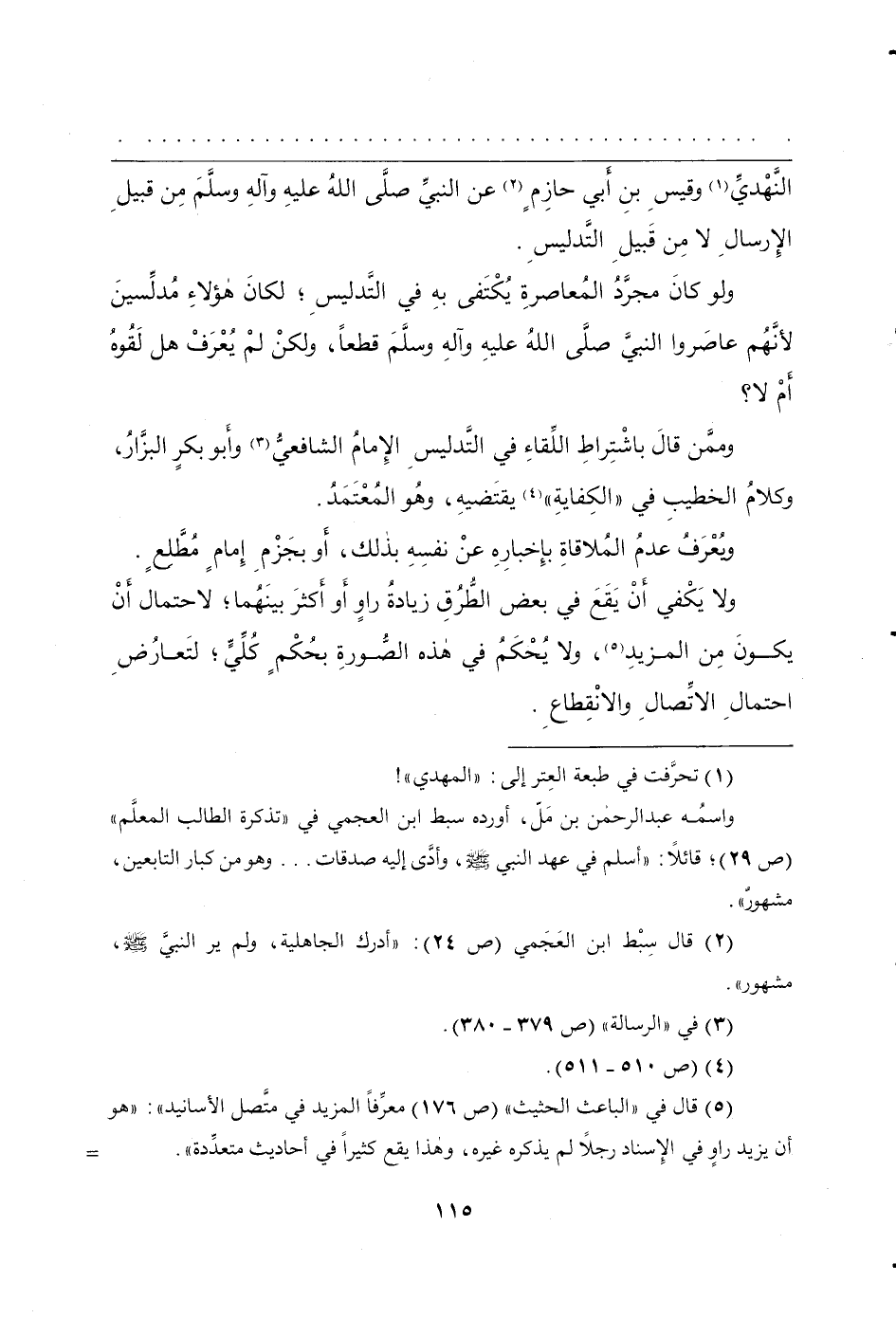النَّهْديِّ وقيسِ بنِ أَبي حازِمٍ عن النبيِّ صلَّى اللهُ عليهِ وآلهِ وسلَّمَ مِن قبيلِ الإِرسالِ لا مِن قَبيلِ التَّدليسِ.