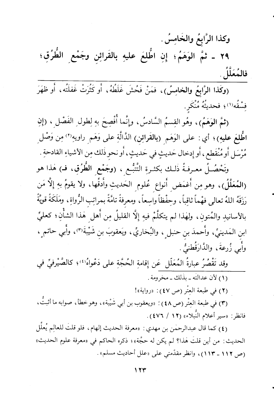 29 - ثُمَّ الْوَهْمُ؛ إِنِ اطُّلِعَ عَلَيْهِ بِالْقَرَائِنِ، وَجَمْعِ الطُّرُقِ؛ فَالْمُعَلَّلُ.