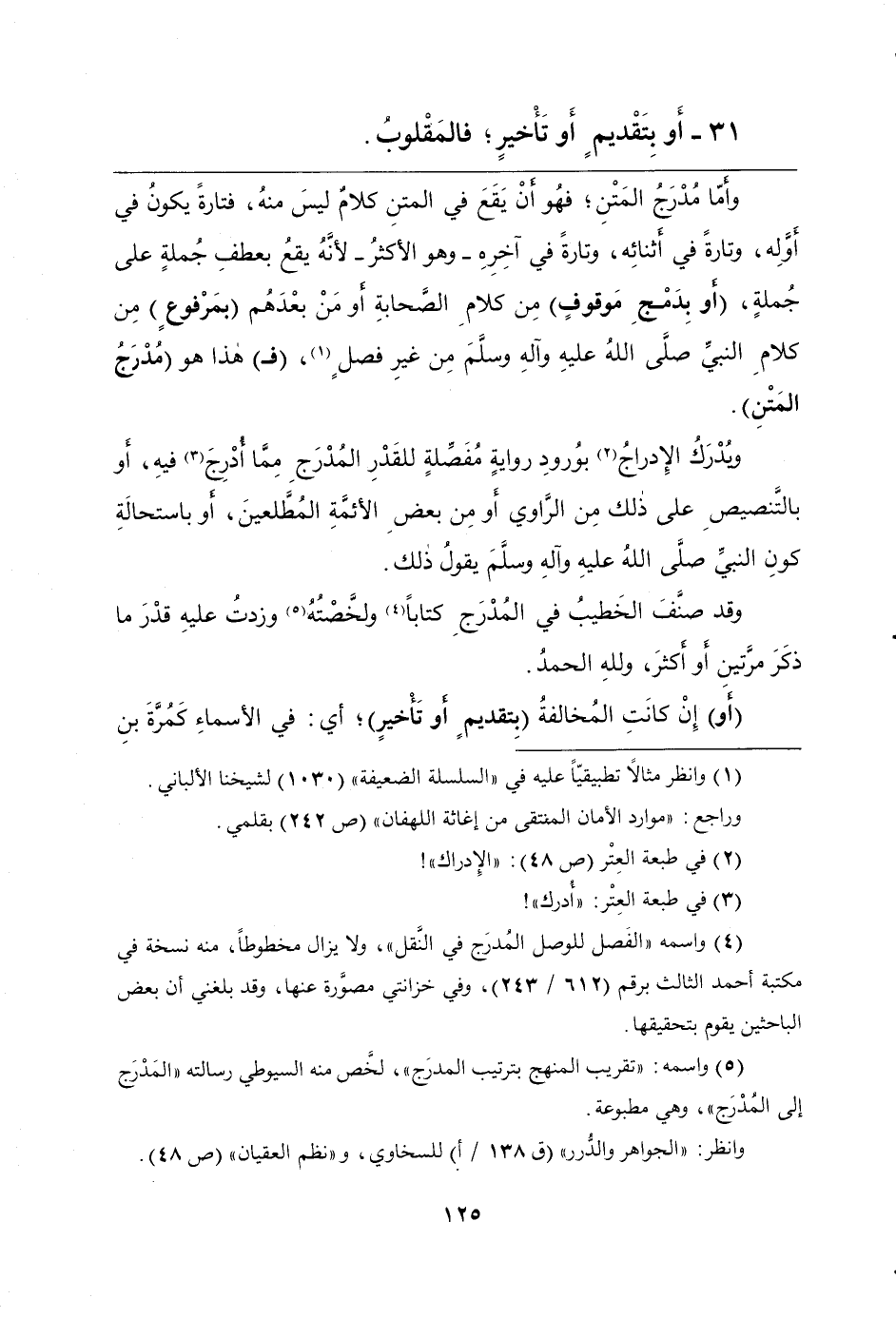 31 - أَوْ بِتَقْدِيمٍ أَوْ تَأْخِيرٍ؛ فَالْمَقْلُوبُ.
