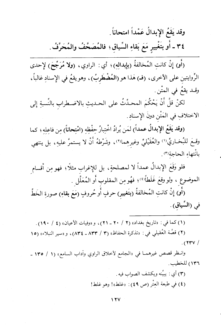 34 - أَوْ بِتَغْيِيرٍ مَعَ بَقَاءِ لسِّيَاقِ، فَالْمُصَحَّفُ وَالْمُحَرَّفُ.