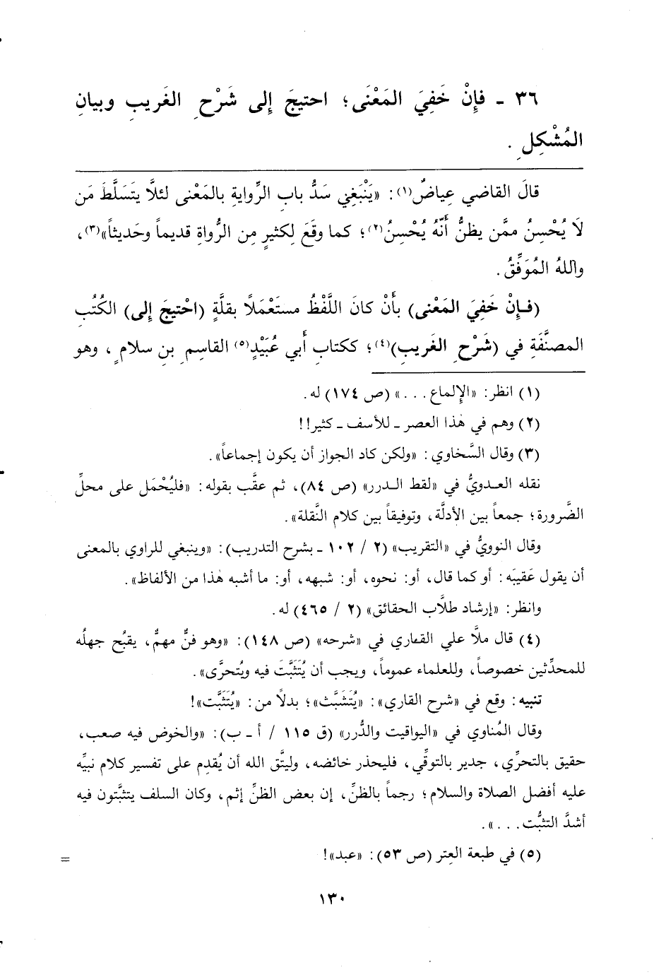 36 - فَإِنْ خَفِيَ الْمَعْنَى؛ احْتِيجَ إِلَى شَرْحِ الْغَرِيبِ وَبَيَانِ الْمُشْكِلِ.