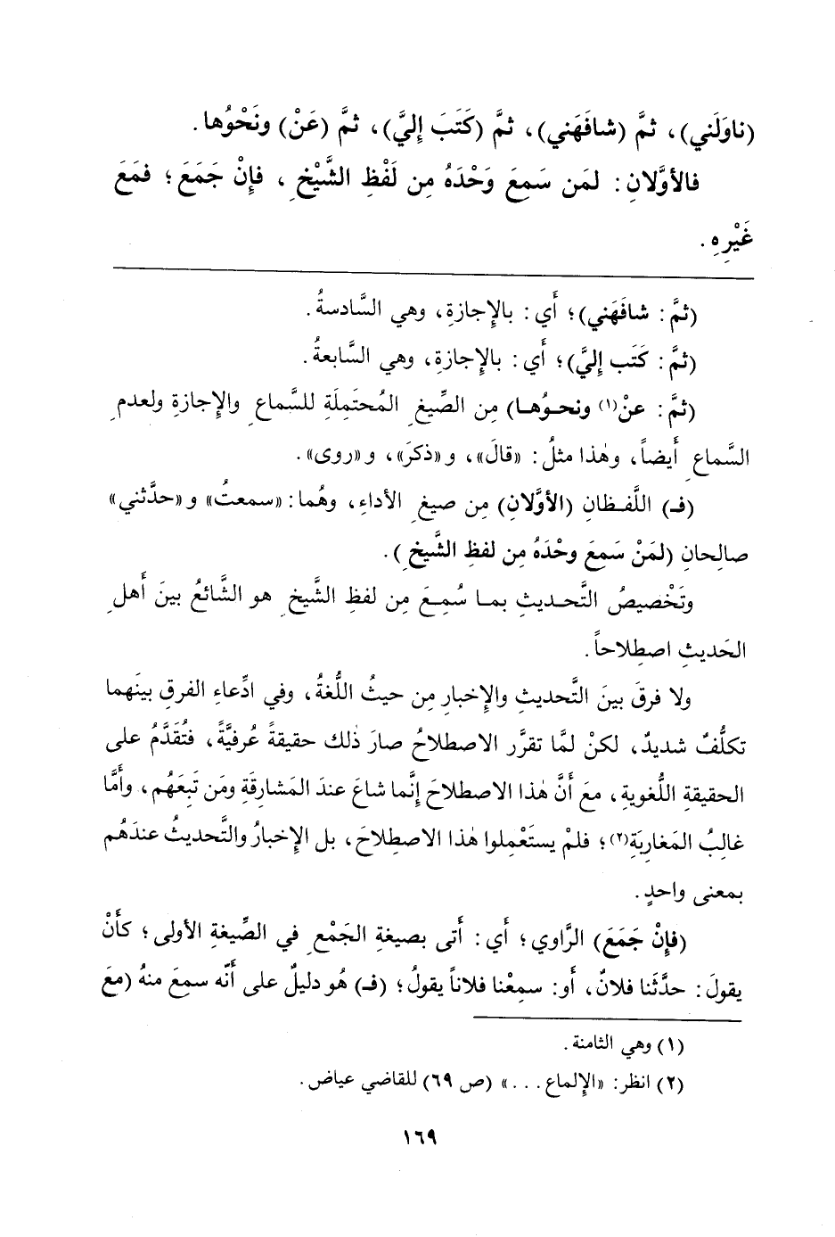 (نَاوَلَنِي)، ثُمَّ (شَافَهَنِي)، ثُمَّ (كَتَبَ إِلَيَّ)،، ثُمَّ (عَنْ)، وَنَحْوَهَا.