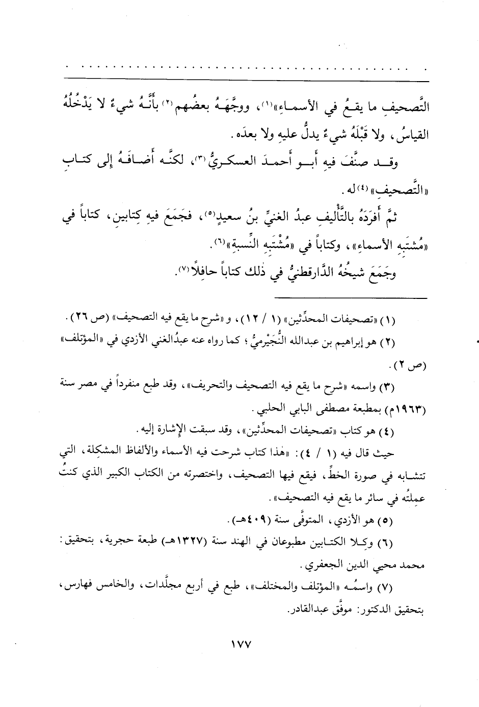 وقد صنَّفَ فيهِ أَبو أَحمدَ العسكريُّ، لكنَّه أَضافَهُ إِلى كتابِ "التَّصحيفِ" له.