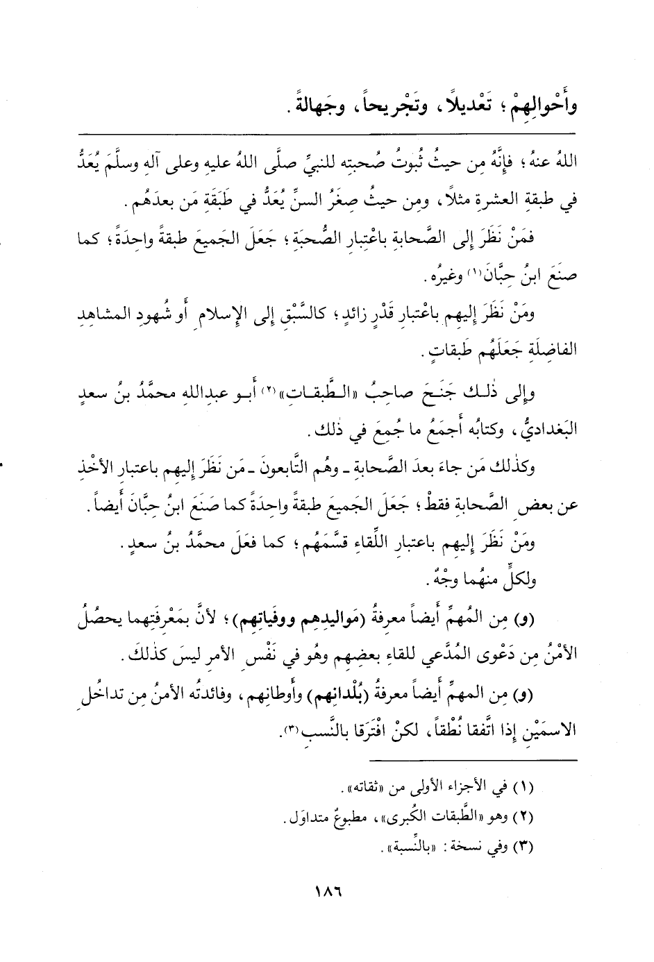 وكذلك مَن جاءَ بعدَ الصَّحابةِ - وهُم التَّابعونَ - مَن نَظَرَ إِليهِم باعتبارِ الأخْذِ عن بعضِ الصَّحابةِ فقطْ؛ جَعَلَ الجَميعَ طبقةً واحِدَةً كما صَنَعَ ابنُ حِبَّانَ أَيضاً.