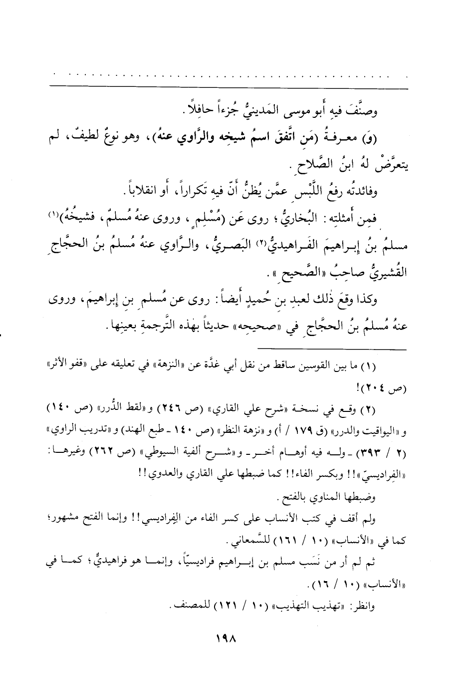 وكذا وقعَ ذلك لعبدِ بنِ حُميدٍ أيضاً: روى عن مُسلمِ بنِ إبراهيمَ، وروى عنهُ مُسلمُ بنُ الحجَّاجِ في صحيحِه حديثاً بهذه التَّرجمةِ بعينها.