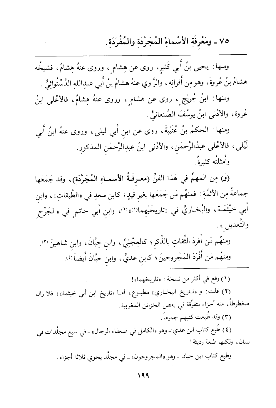 75 - وَمَعْرِفَةُ الْأَسْمَاءِ الْمُجَرَّدَةِ وَالْمُفْرَدَةِ.