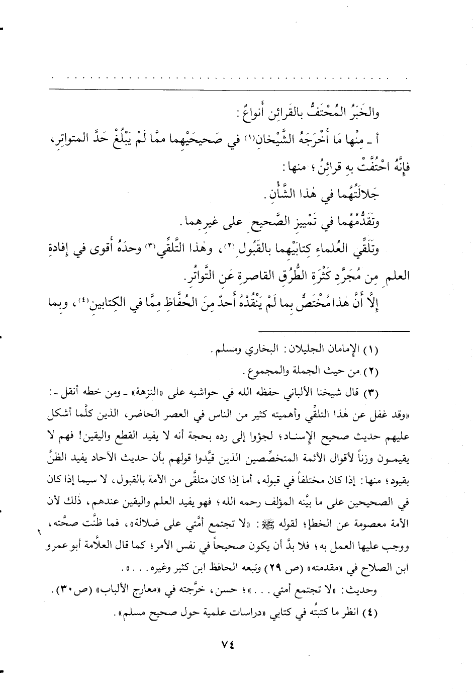 وتَلَقِّي العُلماءِ كِتابَيْهِما بالقَبُولِ، وهذا التَّلقِّي وحدَهُ أَقوى في إِفادةِ العلمِ مِن مُجَرَّدِ كَثْرَةِ الطُّرُقِ القاصرةِ عَنِ التَّواتُرِ.