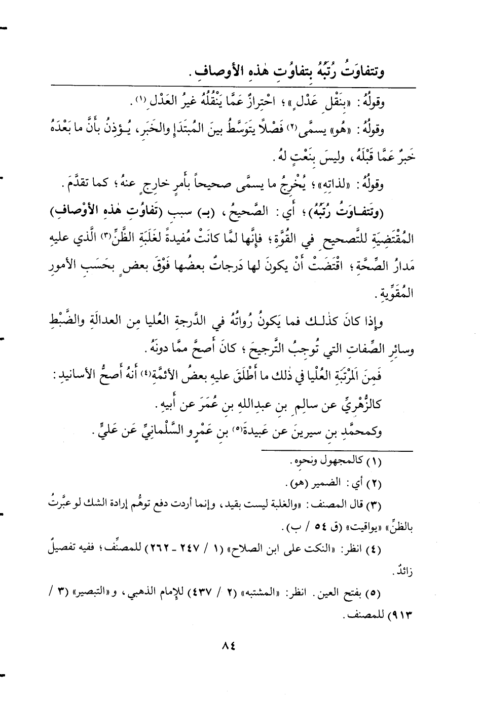 وتتفاوَتُ رُتَبُهُ بِتفاوُتِ هذهِ الأوْصافِ